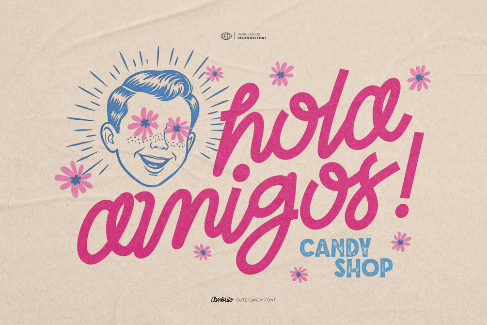 Ambrilo is a cute candy font crafted for designers who love playful charm with a retro look and modern script elegance. Inspired by bubblegum shops, vintage sweet ads, and handwritten love notes, this font blends fancy monoline style with a smooth, sugary flow. Every curve feels hand-drawn, making it perfect for projects that need a touch of whimsy, joy, and sweetness.