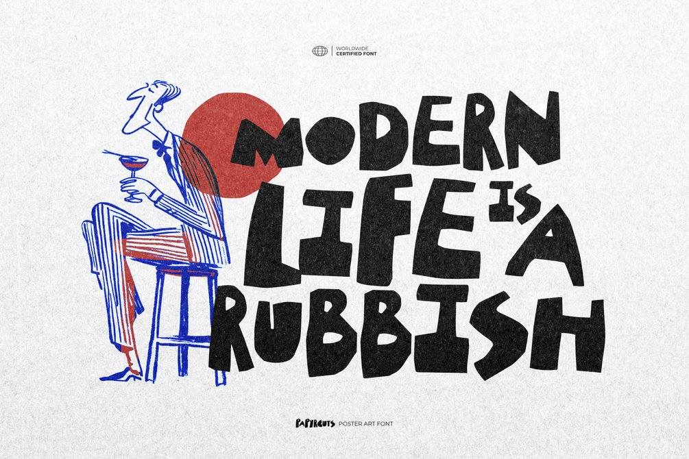 Whether you’re creating a hype editorial spread, an art exhibition poster, or an indie brand logo, Papyrcuts adds a layer of art-school rebellion and handcrafted imperfection. It’s the ultimate artsy display font for designers who love texture, bold personality, and experimental vibes.