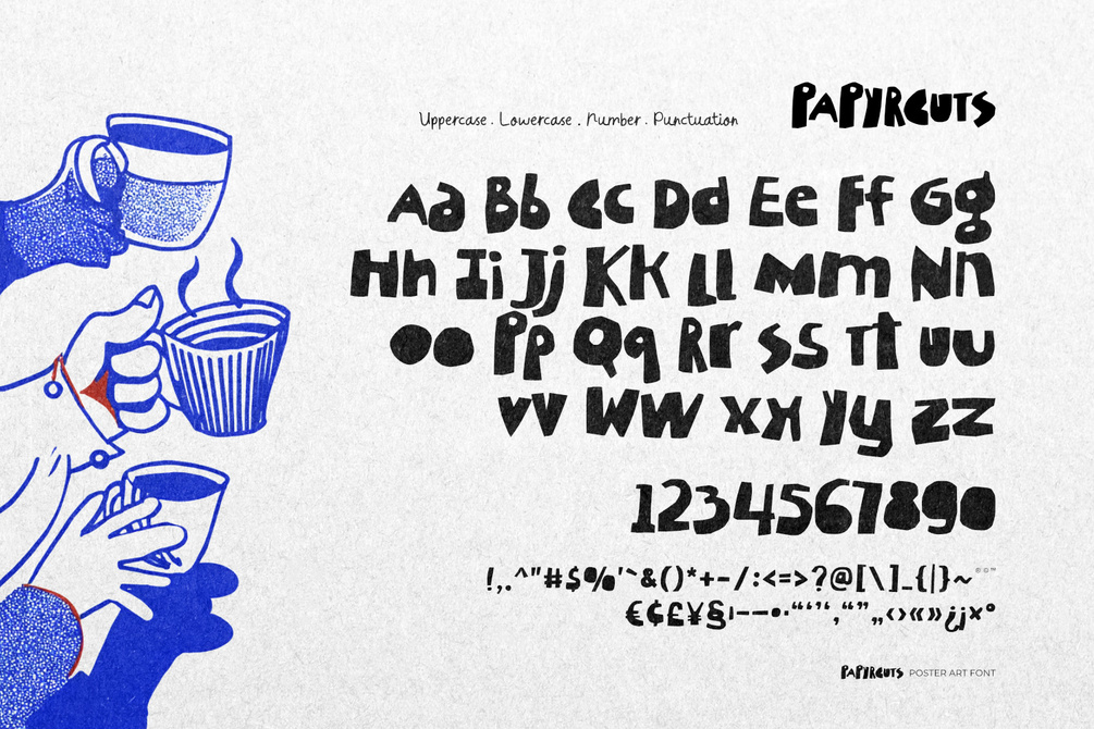 Whether you’re creating a hype editorial spread, an art exhibition poster, or an indie brand logo, Papyrcuts adds a layer of art-school rebellion and handcrafted imperfection. It’s the ultimate artsy display font for designers who love texture, bold personality, and experimental vibes.